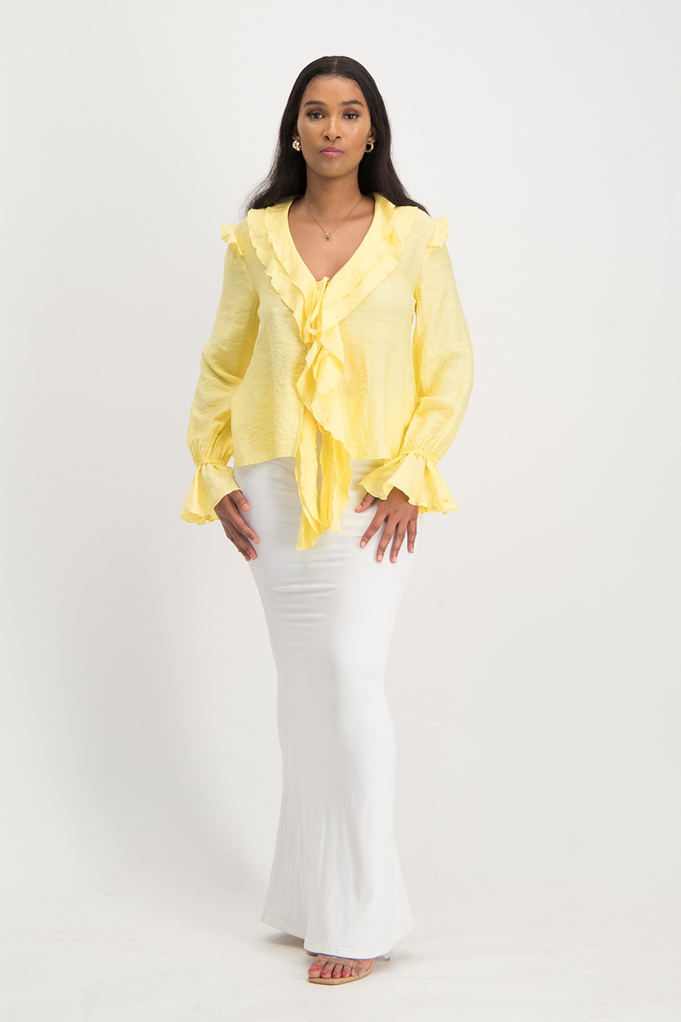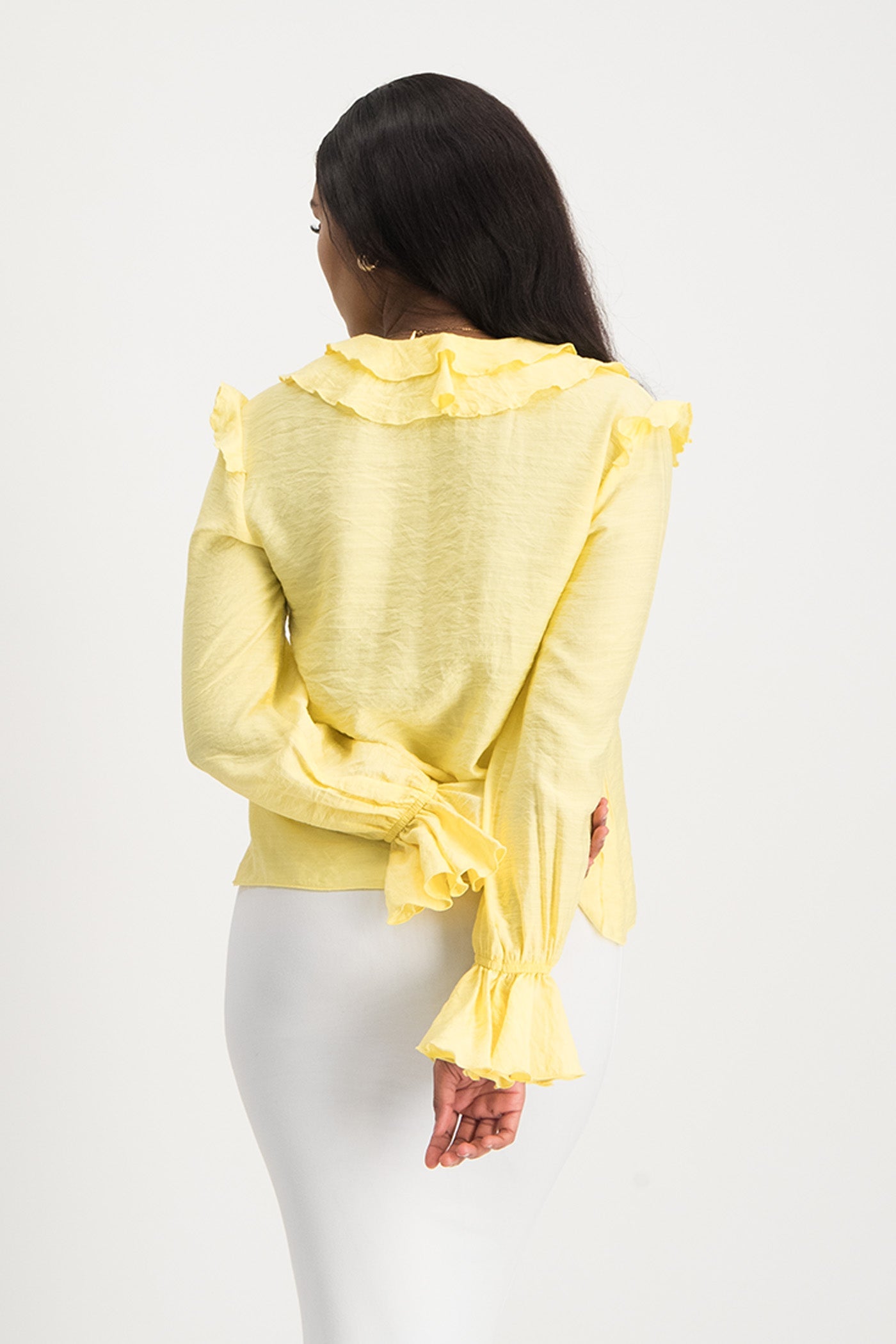 Reese Tie Front Ruffle Blouse - Lemon