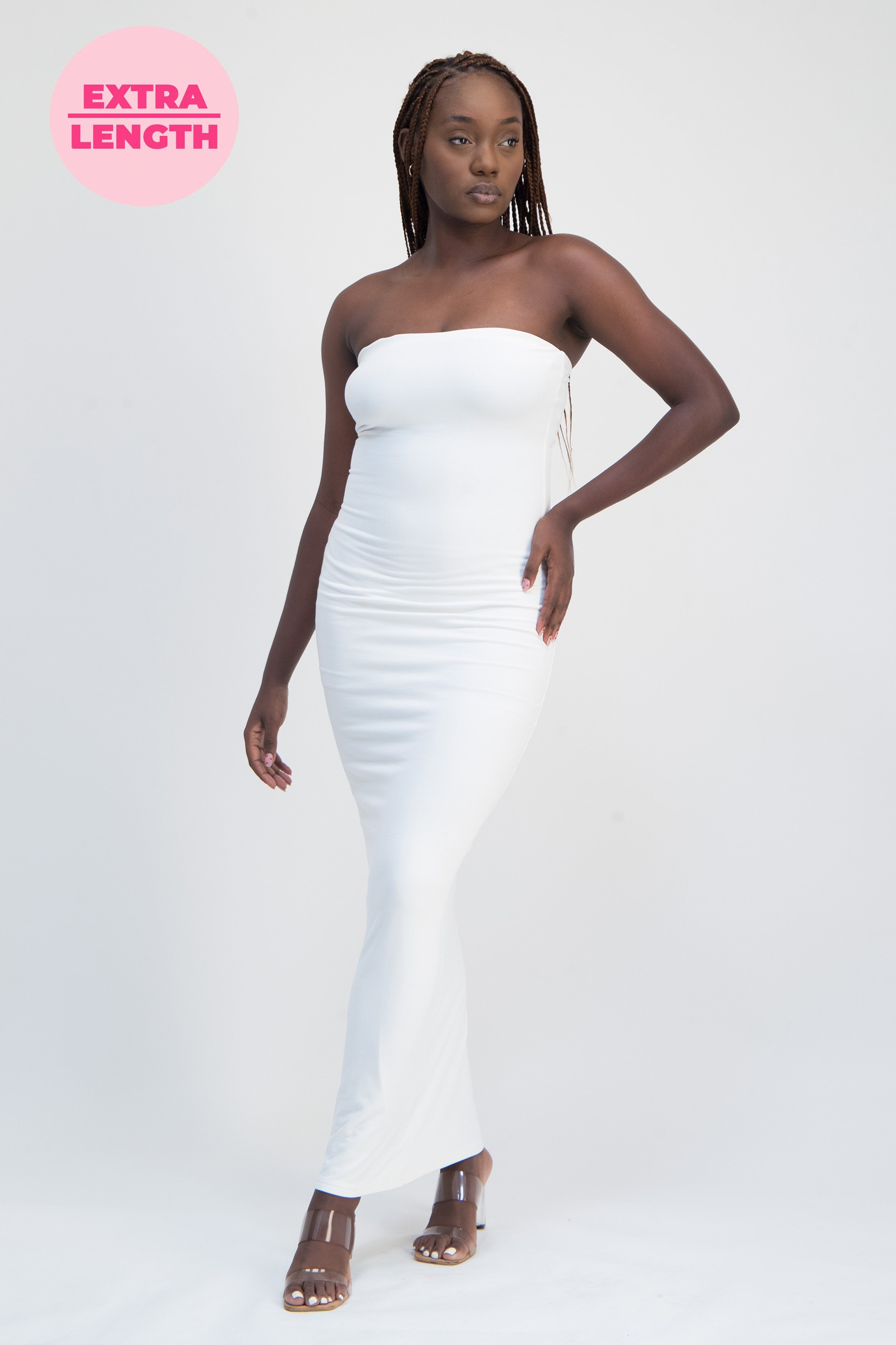 The XTRA LENGTH Lounge Bandeau Bodycon Dress is here and it's made from our fave DTY Super Soft fabrication. This dress will hug your curves in all the right places with its bandeau top style.  Dress it down with your go-to slides or dress it up with some killer heels...